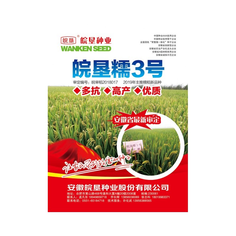 審定編號(hào):皖審稻2018017