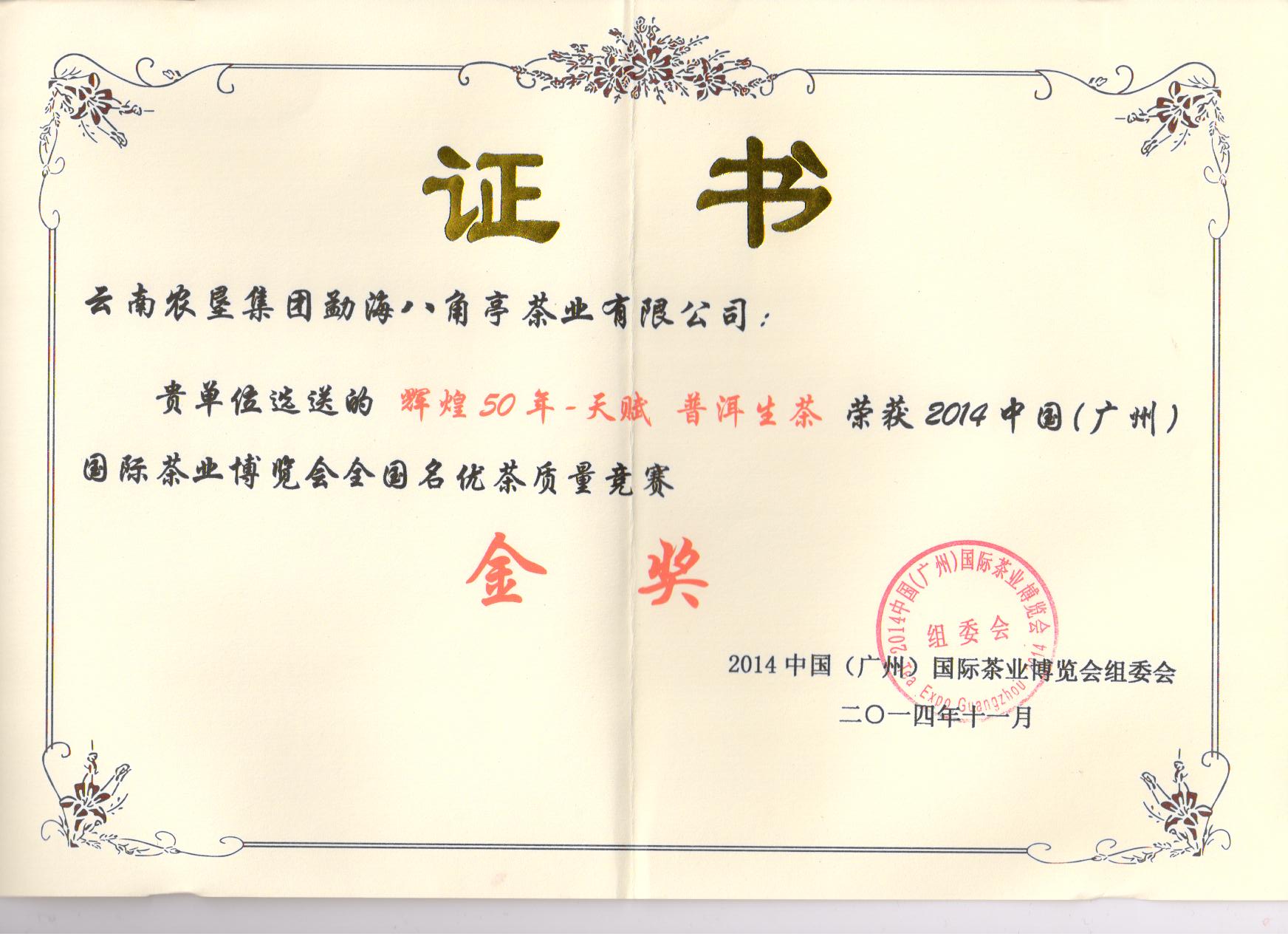 首頁 > 榮譽資質 > 2014年廣州茶博會金獎