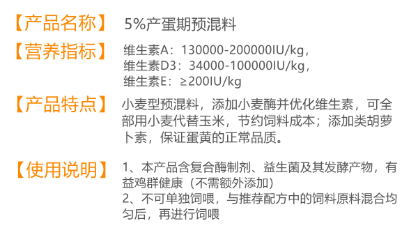 5%產(chǎn)蛋期預(yù)混料