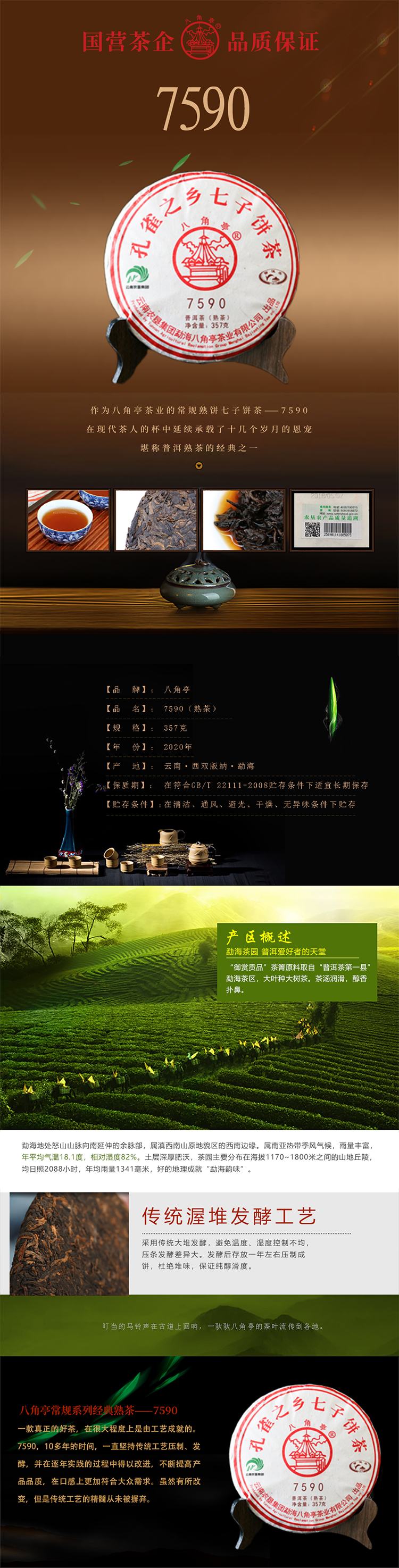 云墾茶業(yè)集團(tuán)下屬茶葉生產(chǎn)企業(yè)——云南農(nóng)墾集團(tuán)勐海八角亭茶業(yè)有限公司原名黎明茶廠,是我國(guó)歷史最為悠久的茶企之一,曾位列“中國(guó)普洱茶十大知名品牌”“十大最受歡迎茶葉品牌”、“中國(guó)普洱茶十大暢銷(xiāo)品牌”中,成為今天市場(chǎng)上最有影響力的品牌之一。公司產(chǎn)品獲得“綠色食品”、ISO9001、 HACCP和云茶品牌(YC)4項(xiàng)認(rèn)證,連續(xù)獲得“云南名牌農(nóng)產(chǎn)品”“云南名牌產(chǎn)品”“云南省著名商標(biāo)”等品牌榮譽(yù),公司生產(chǎn)的多款普洱茶在歷次專(zhuān)業(yè)評(píng)比中多次獲得特等金獎(jiǎng)和金獎(jiǎng)。在2018第五屆中國(guó)企業(yè)五星品牌論壇上,云南農(nóng)墾集團(tuán)勐海八角亭茶業(yè)有限公司上榜中國(guó)普洱茶行業(yè)影響力品牌——“金芽獎(jiǎng)”,公司負(fù)責(zé)人陳勝軍先生獲“陸羽獎(jiǎng)”,被授予2017“國(guó)際十大杰出茶人”榮譽(yù)稱(chēng)號(hào)。