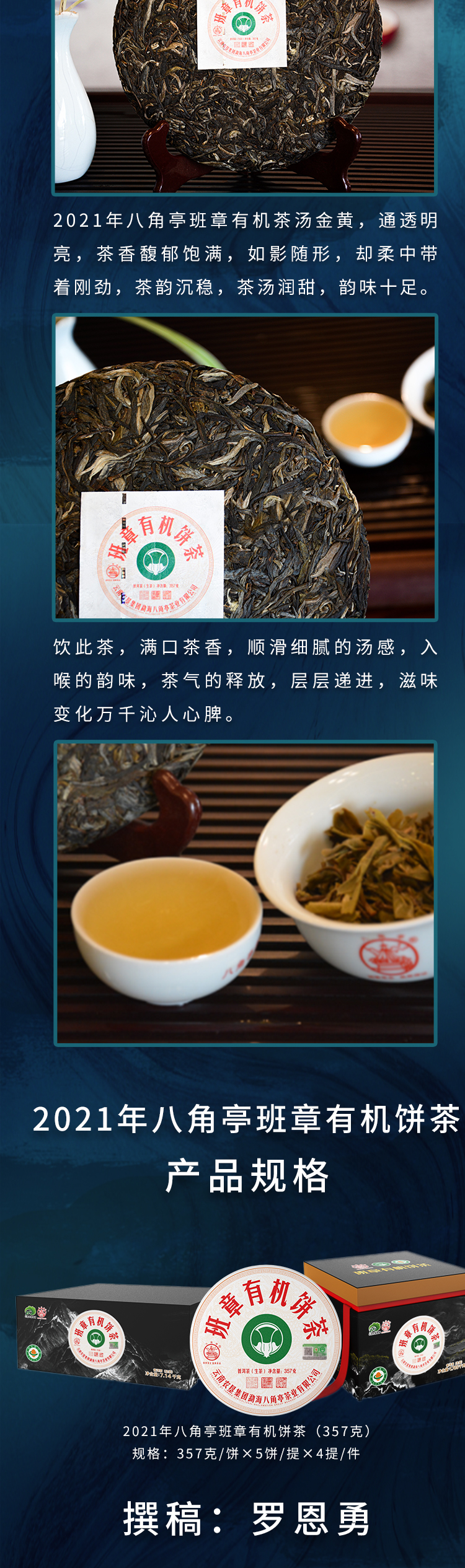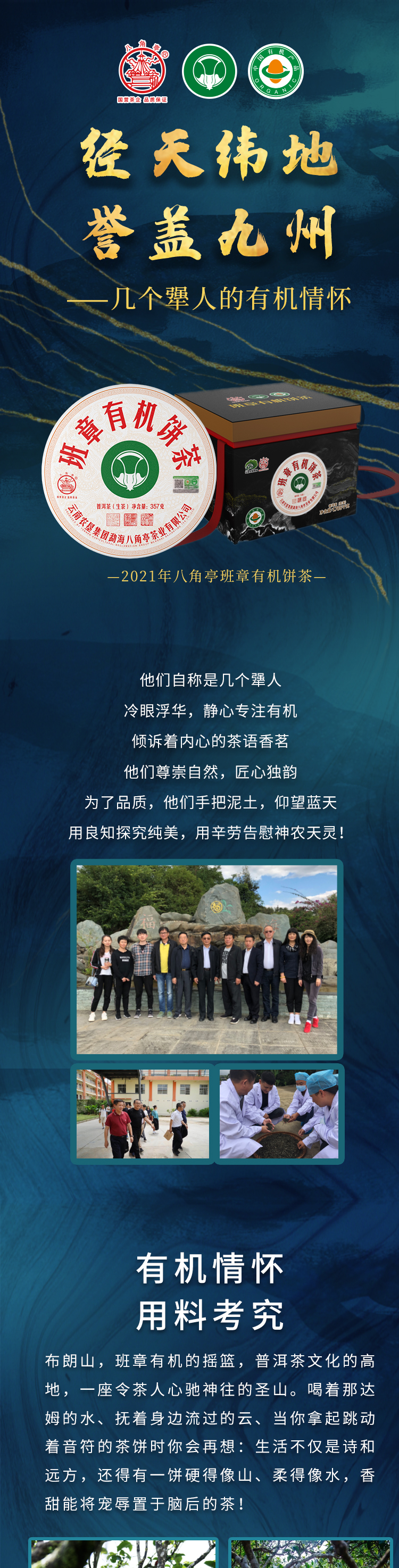 ??——八角亭茶業公司:經營方式為生產加工、銷售,主營普洱茶、緊壓茶、兼營毛茶收購。目前以生產、加工、銷售“八角亭”系列普洱茶為主,是云南省農業產業化龍頭企業。“八角亭”商標獲得云南省著名商標,“八角亭”牌普洱茶榮獲云南省名牌產品和云南省名牌農產品。已先后通過工業生產許可證、ISQ9001與HCCP認證、云茶牌認證(YC)等項工作,在歷次專業評比中“八角亭”普洱茶多次獲得特等金獎和金獎。2017年5月,“八角亭”牌老班章茶葉獲得了有機茶資格認證。八角亭茶業公司多次進行了技術改造,現已建立了標準化生產車間和設備,年設計生產量達3000噸,是整個公司的主體核心企業。