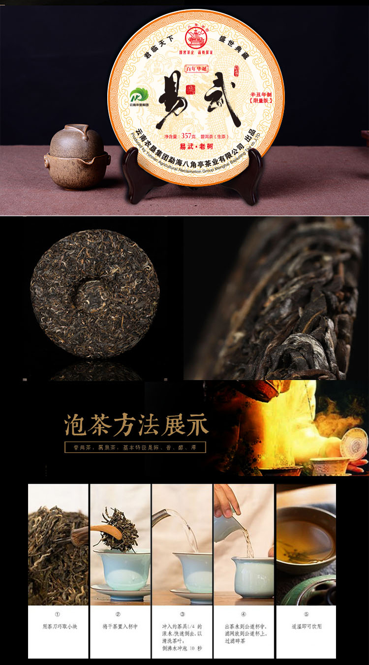 ??——八角亭茶業公司:經營方式為生產加工、銷售,主營普洱茶、緊壓茶、兼營毛茶收購。目前以生產、加工、銷售“八角亭”系列普洱茶為主,是云南省農業產業化龍頭企業。“八角亭”商標獲得云南省著名商標,“八角亭”牌普洱茶榮獲云南省名牌產品和云南省名牌農產品。已先后通過工業生產許可證、ISQ9001與HCCP認證、云茶牌認證(YC)等項工作,在歷次專業評比中“八角亭”普洱茶多次獲得特等金獎和金獎。2017年5月,“八角亭”牌老班章茶葉獲得了有機茶資格認證。八角亭茶業公司多次進行了技術改造,現已建立了標準化生產車間和設備,年設計生產量達3000噸,是整個公司的主體核心企業。