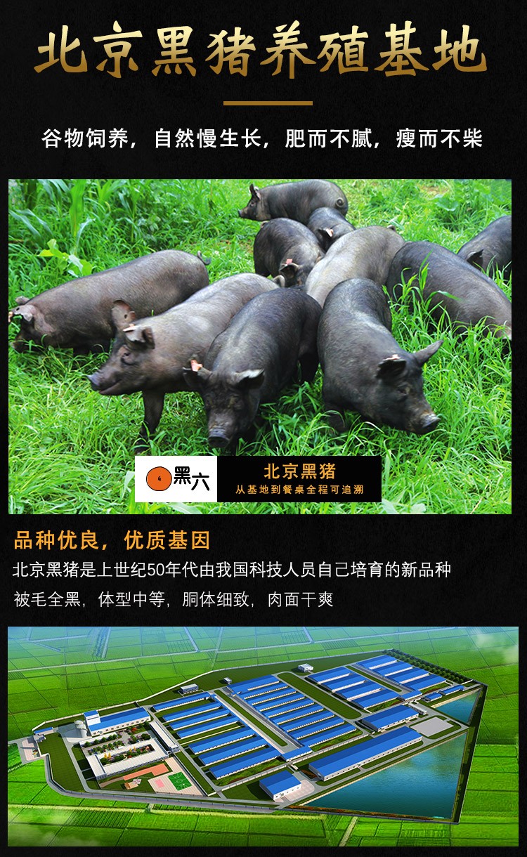 自公司成立以來,黑六團隊秉承“黑六”文化精髓,以飼養北京黑豬、弘揚民族品牌,滿足市場對差異化、特色安全優質豬肉的需求為企業使命,通過地方優良豬種飼養模式和“黑六”品牌建設的創新,展現了北京黑豬的卓越品質和風采,成為我國地方豬種和地方培育品種科學保護、有效開發、成功利用的典范。