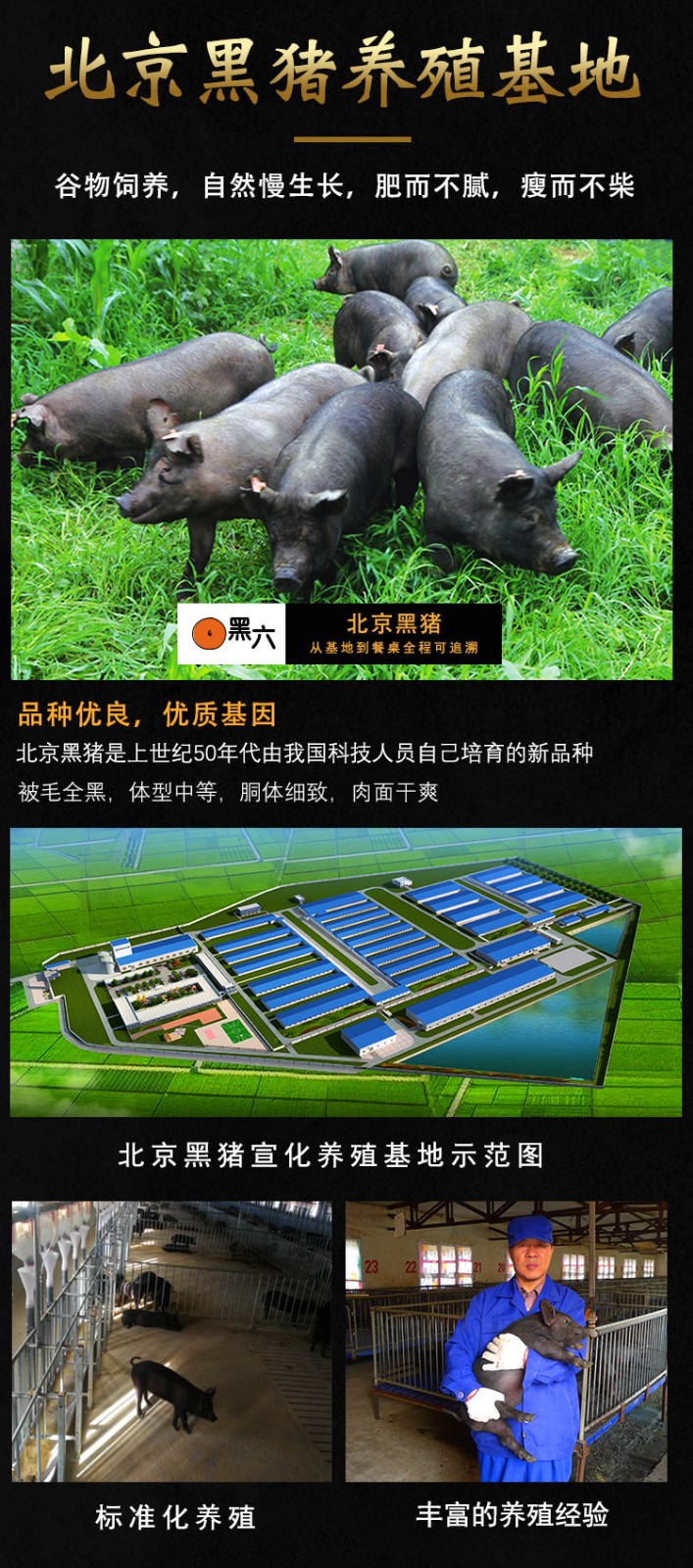 自公司成立以來,黑六團隊秉承“黑六”文化精髓,以飼養(yǎng)北京黑豬、弘揚民族品牌,滿足市場對差異化、特色安全優(yōu)質豬肉的需求為企業(yè)使命,通過地方優(yōu)良豬種飼養(yǎng)模式和“黑六”品牌建設的創(chuàng)新,展現(xiàn)了北京黑豬的卓越品質和風采,成為我國地方豬種和地方培育品種科學保護、有效開發(fā)、成功利用的典范。