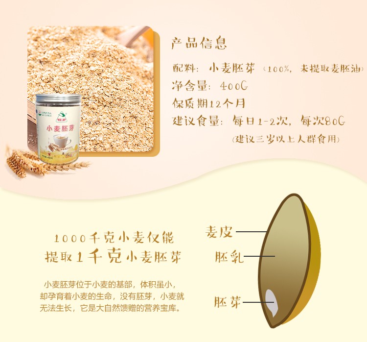 皖墾小麥胚芽即食沖泡新鮮胚芽燕麥片罐裝谷物代餐400g/罐