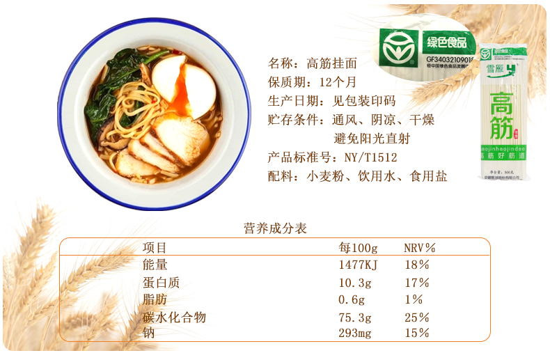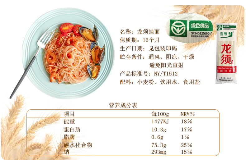 皖墾精品高筋面龍須面掛面素食代餐拌面涼拌麥香
